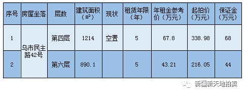 【拍卖公告】乌鲁木齐市天山区民主路世纪大厦第四层、第六层的五年租赁使用权