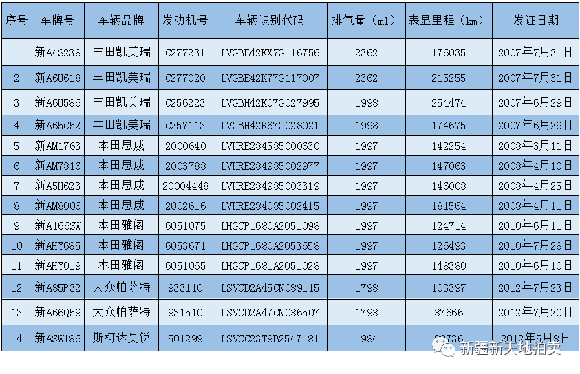 14辆小型机动车整体拍卖,本次拍卖均不包含车辆号牌。